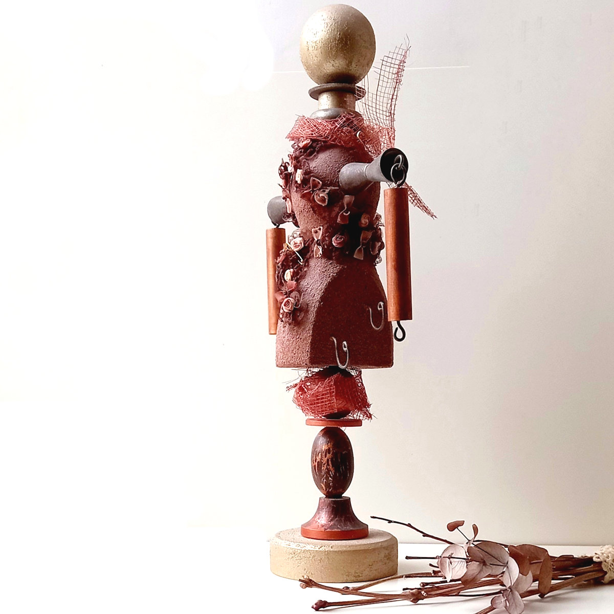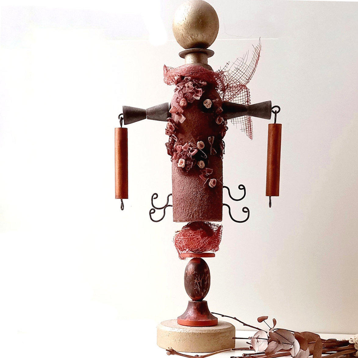 Креативная кукла из натурального дерева для украшения интерьера.